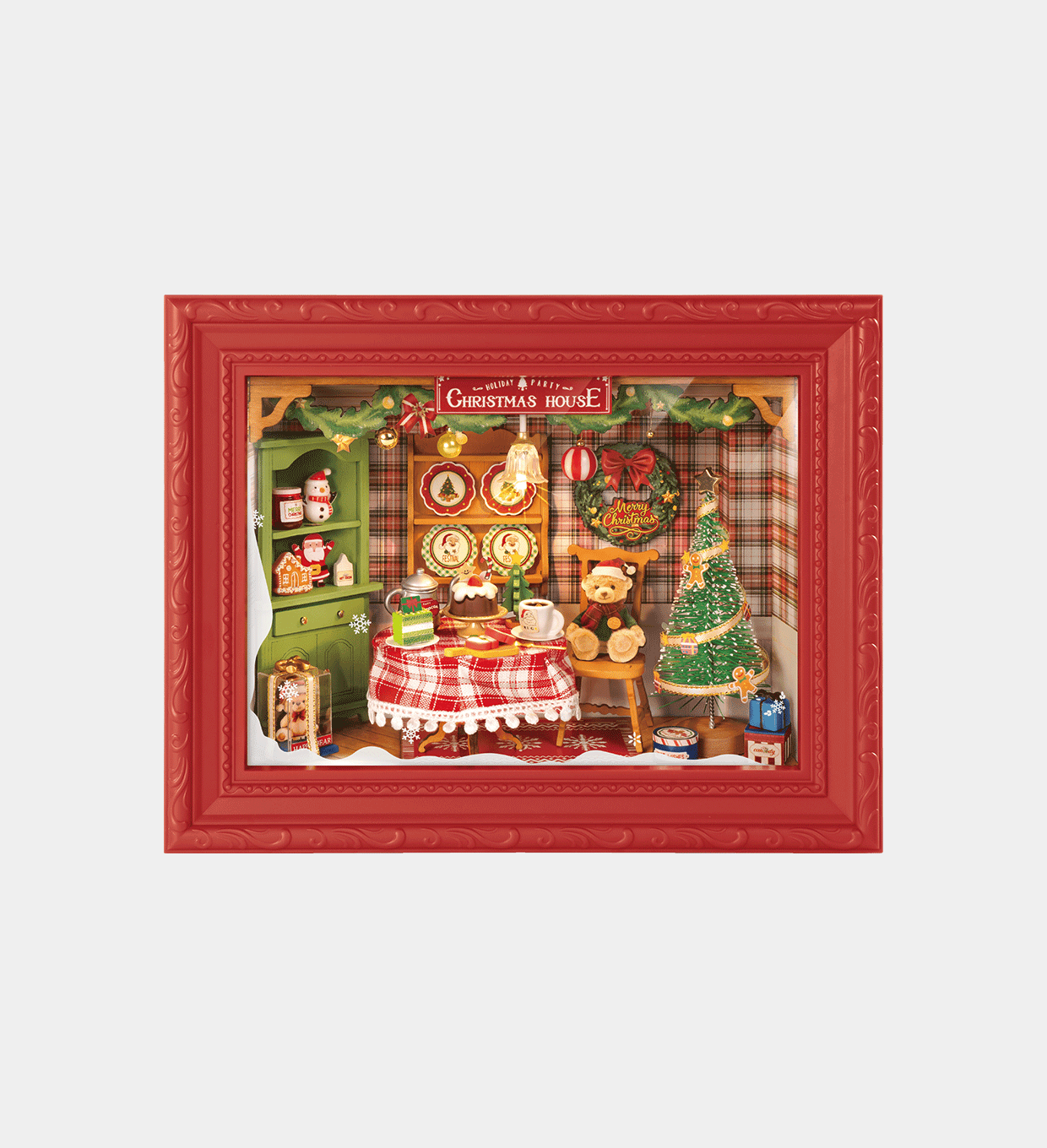 - Rolife's Christmas Eve Party is a meticulously crafted 3D wooden miniature kit that transforms into an enchanting holiday dining room. This assembly project features authentic seasonal details—a decorated evergreen, festive tableware, delicate desserts, wrapped presents, and a charming teddy bear—all set against a traditional red-and-green plaid backdrop. The injection-molded exterior resists dust and cleans effortlessly, whilst a rear hook enables both wall display and tabletop placement. With pre-cut components and comprehensive illustrated guidance, the build requires approximately three hours, making it accessible for crafters of all skill levels. Ideal as a distinctive gift for hobbyists and families seeking meaningful holiday entertainment. Dimensions: 218x82x168mm. Requires two AAA batteries (not supplied).