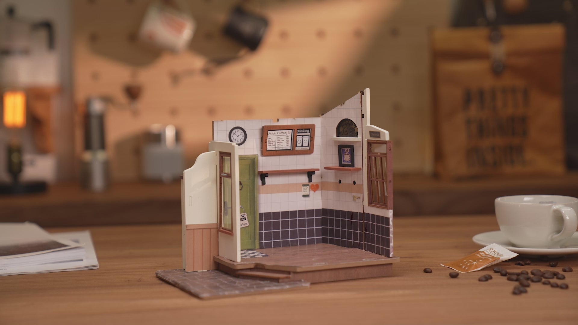 Step into the enchanting world of the Café Miniature House and surrender to the allure of exquisite nostalgia. It has the ambiance of a premium café that transports you to a realm of relaxation, indulgence, and retro charm. Drawing inspiration from the timeless beauty of classic coffee shops, this miniature masterpiece weaves a symphony of wooden elements that breathe life into its inviting atmosphere.